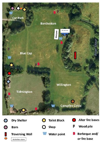 There are two main camping areas, Barcheston/Blue Cap and Tidmington/Willington, each with their own toilet facilities. The Tidmingon/Willington site has a dry shelter but regrettably, due to safety concerns the Barcheston/Blue Cap dry shelter is no longer available for use. During the camping season, we shall be pitching a marquee on this site with tables and chairs.